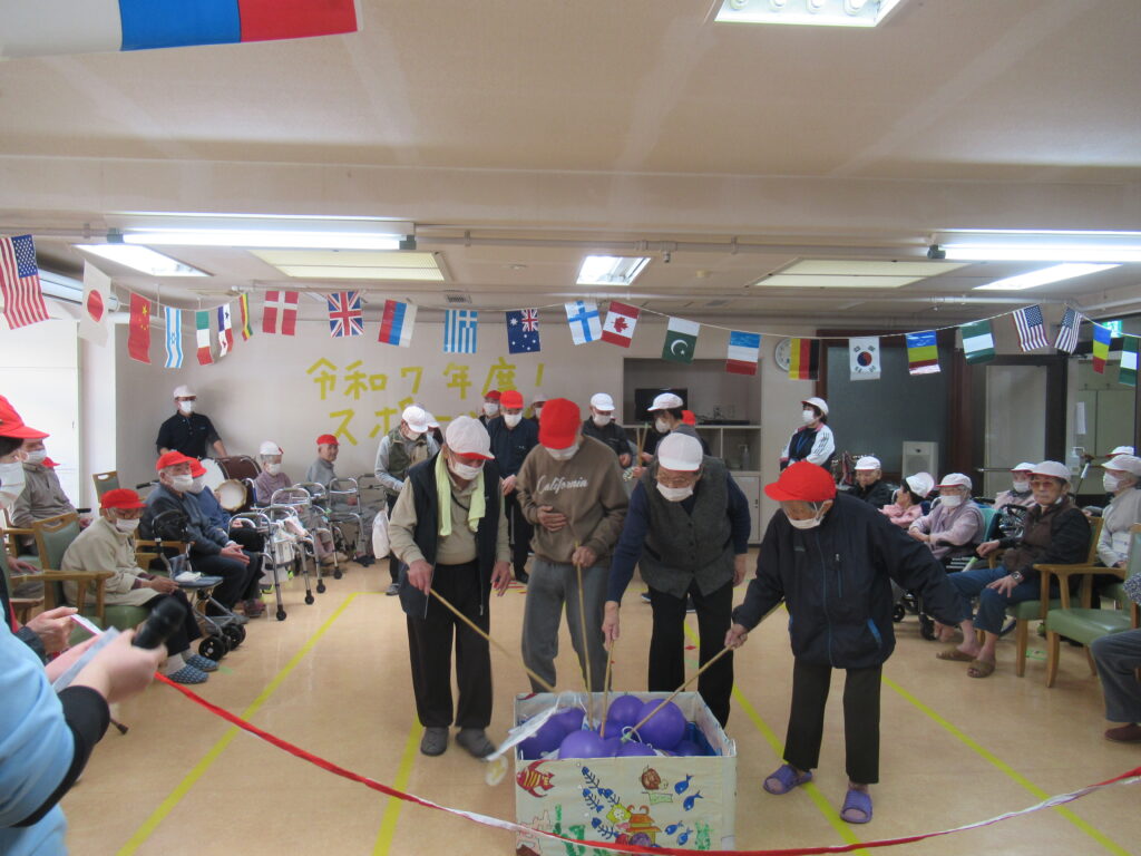 ③風船バレー:ふわふわ舞う風船に翻弄されつつも必死に応戦。